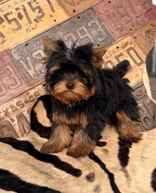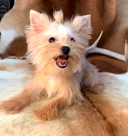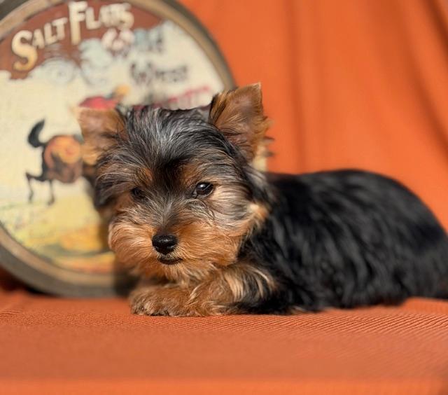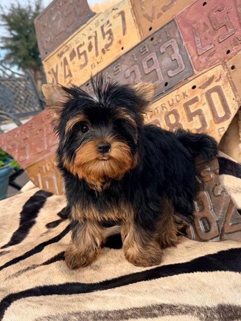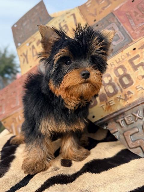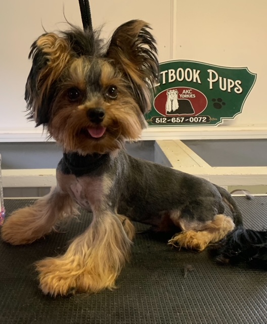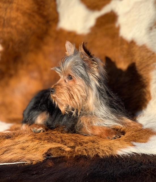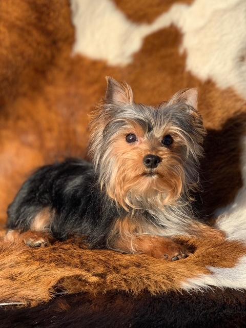 He is so shiny and soft. A lap dog anyone? Yorkies are the best companions. If you've never owned a yorkie you will be hooked for life. Small dog with big dog spirit!