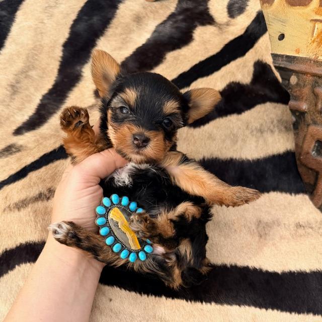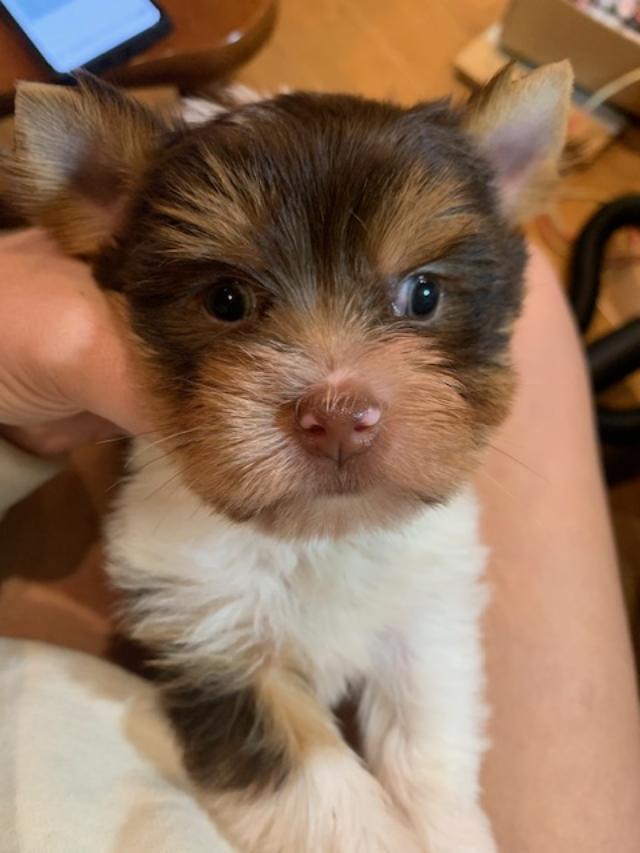 This little man is a keeper. Definitely a teacup size with a petite face and tiny feet. Ears are nice and not too huge. Mom is a parti and dad is traditional.