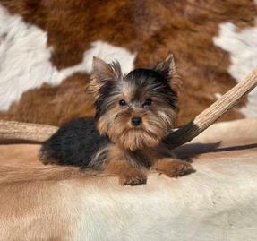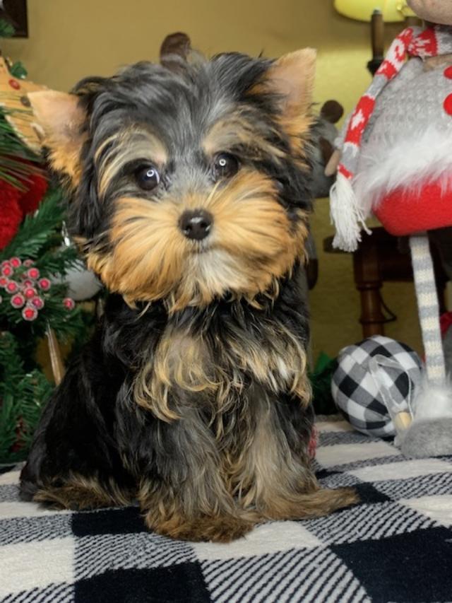He is so shiny and soft. A lap dog anyone? Yorkies are the best companions. If you've never owned a yorkie you will be hooked for life. Small dog with big dog spirit!