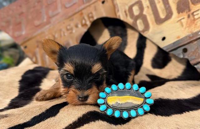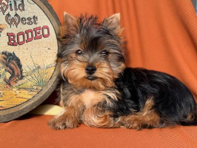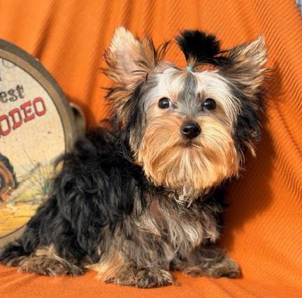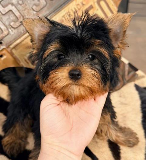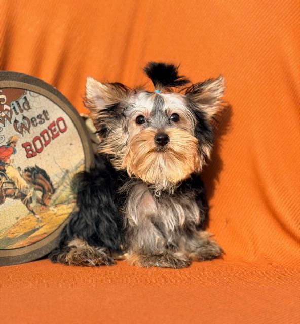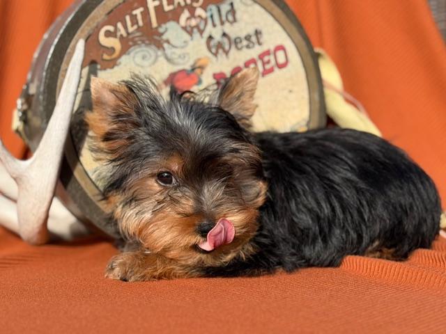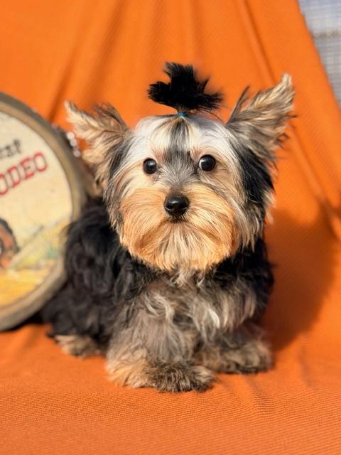 He is so shiny and soft. A lap dog anyone? Yorkies are the best companions. If you've never owned a yorkie you will be hooked for life. Small dog with big dog spirit!