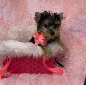 This little man is a keeper. Definitely a teacup size with a petite face and tiny feet. Ears are nice and not too huge. Mom is a parti and dad is traditional.