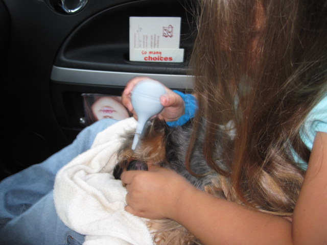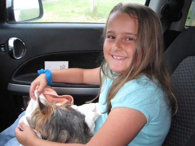 On the way to the vet and Penny had a pup in Kaleigh's lap. Wow!