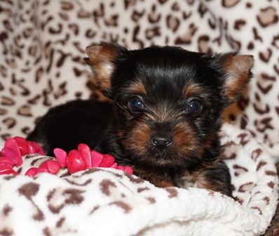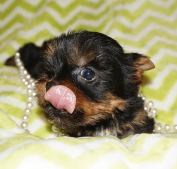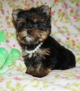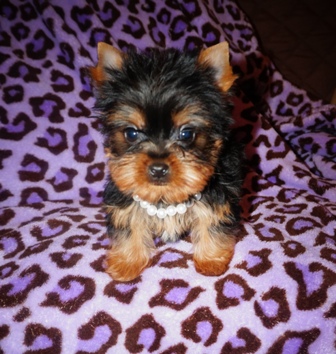 A tiny adorable little yorkie female! Her face is petite and would be a wonderful addition to any family! Yorkies are so loving!